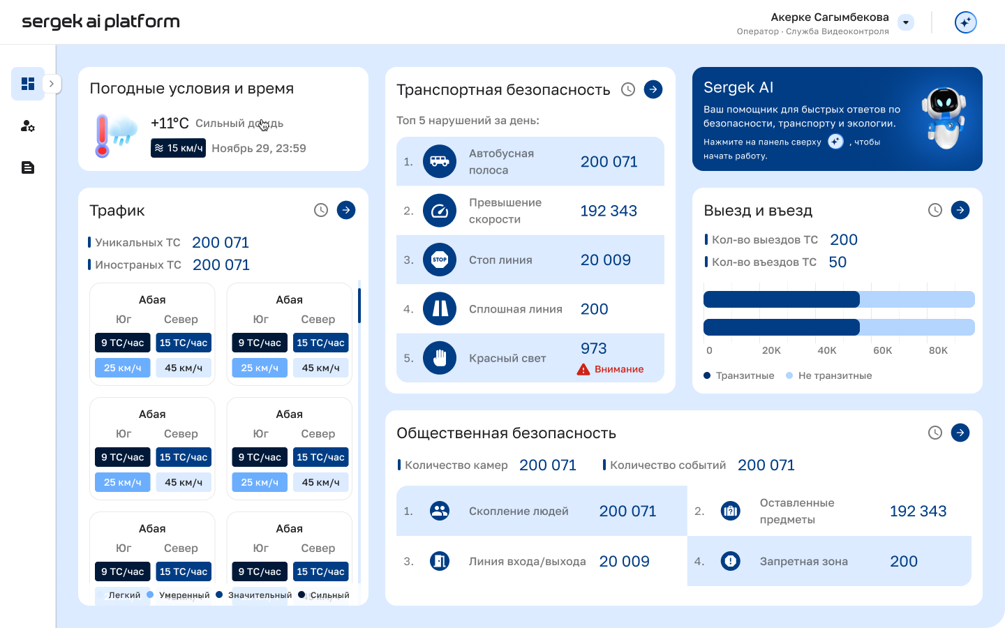 AI-платформа для управления трафиком и обеспечения безопасности.Платформа Sergek — это интегрированная AI-платформа для управления трафиком